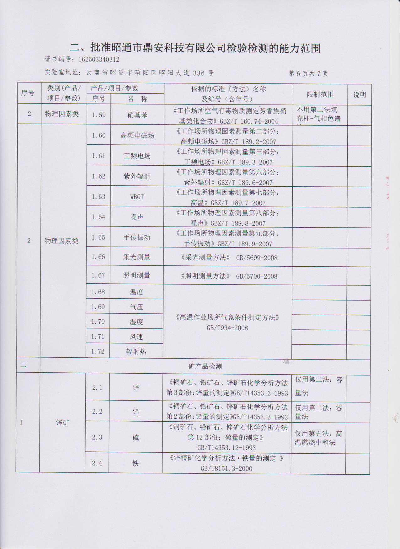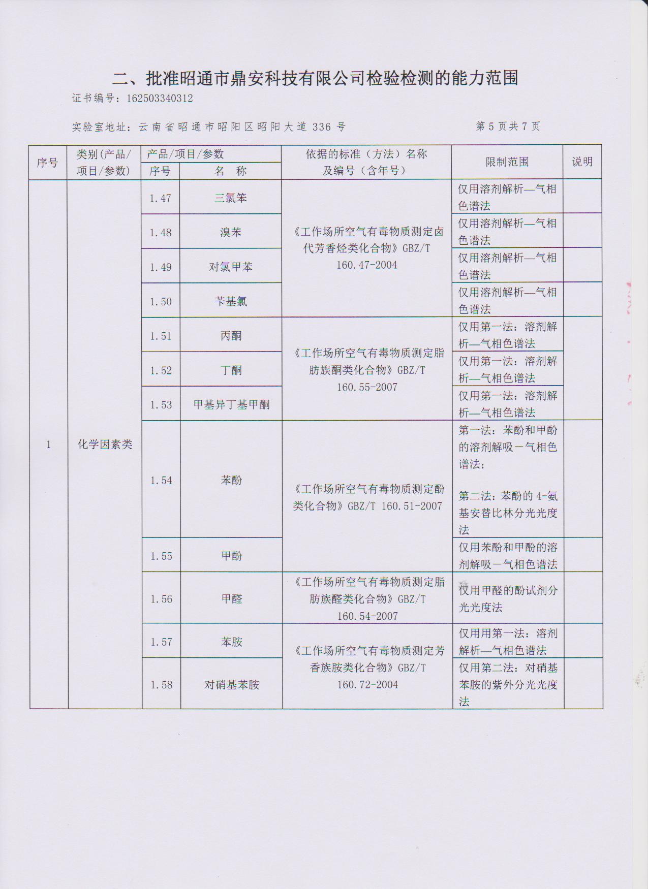 經技術評審審核認定的檢測項目(第一類業務 合計110項)