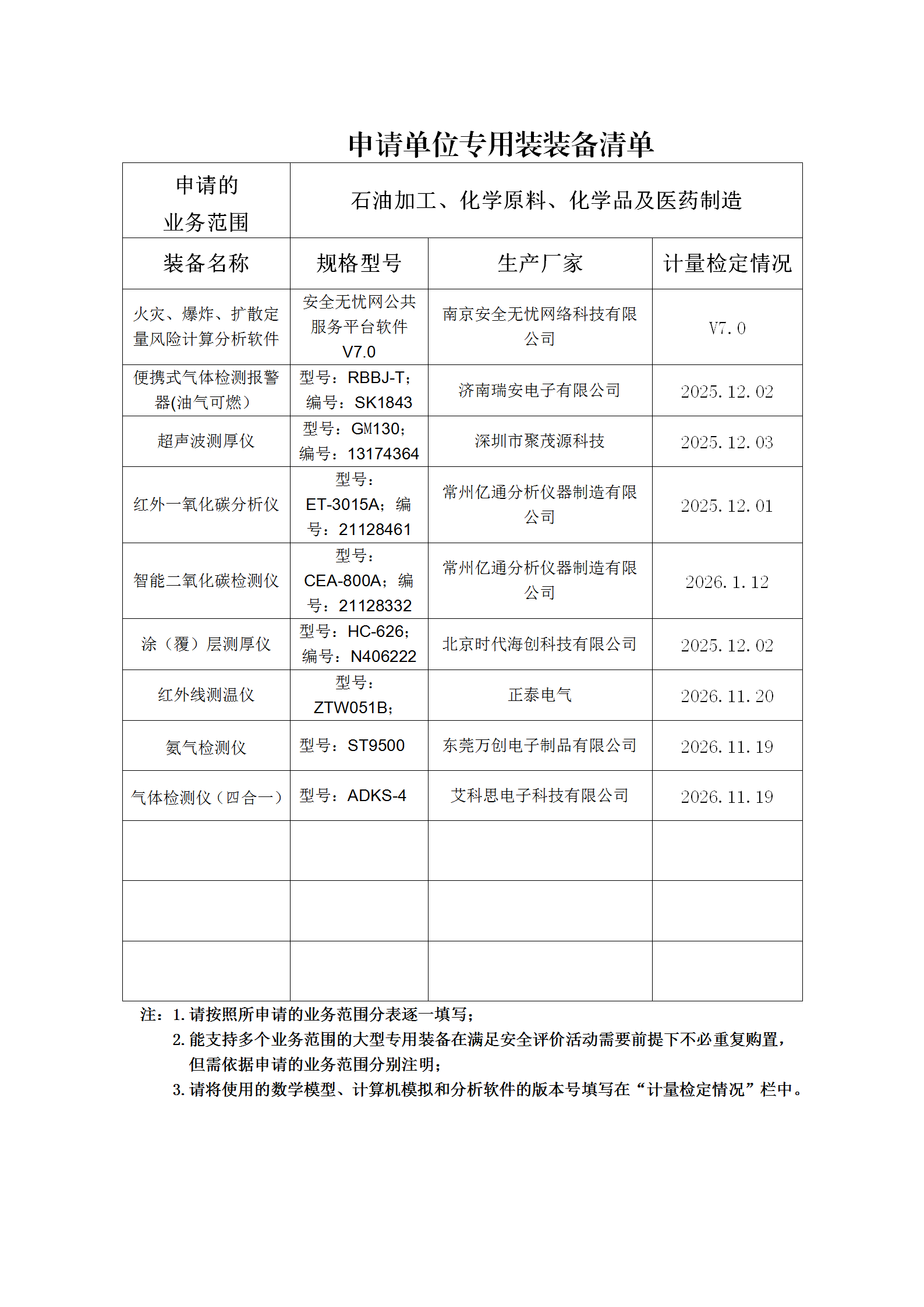 昭通市鼎安科技有限公司專業設備、設施一覽表